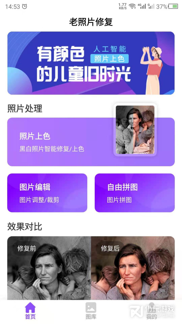 照片上色是一款可以为老照片上色的应用,照片上色可以将陈旧的老照片焕然一新,不仅可以将黑白照片转换为色彩照片而且可以一键修复老照片,便捷的照片修复功能可以在这里找到,在修复过程中可以实时对比效果,修复之后的照片可以直接保存起来,喜欢的话可以随时在此回看老照片。