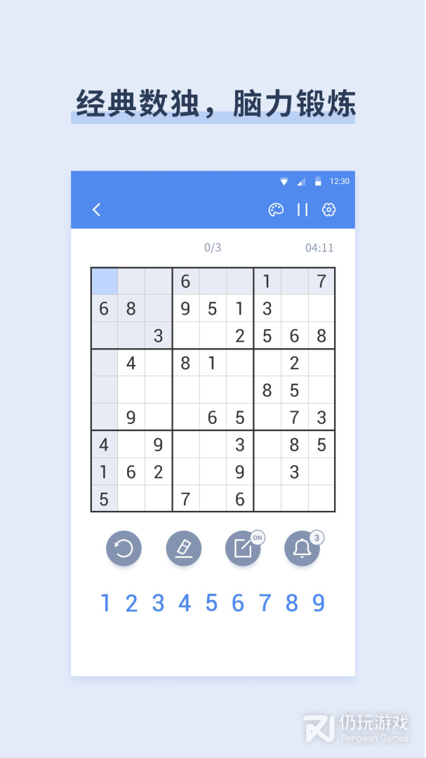 这款经典数独是用数字填充9x9的宫格,让每一行,每一列和每个3x3小九宫格部分都包含1到9之间的数字。