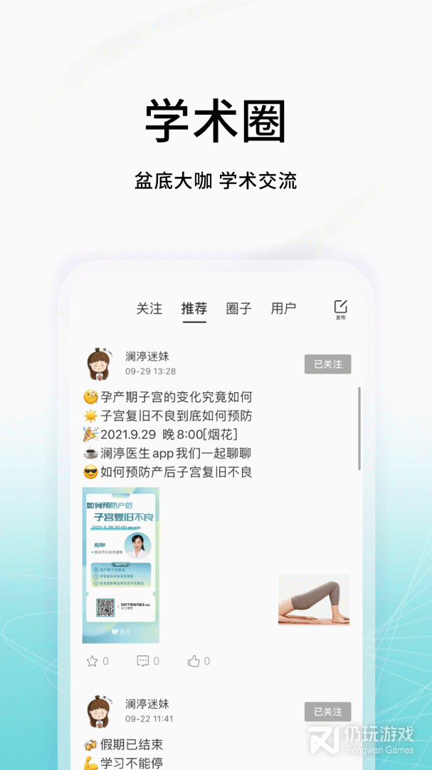 1、澜渟医生是医生专用辅助软件。软件为骨盆医生提供患者数据,在线与患者交流,同时还有医生专用交流圈,实时了解行业最新动态