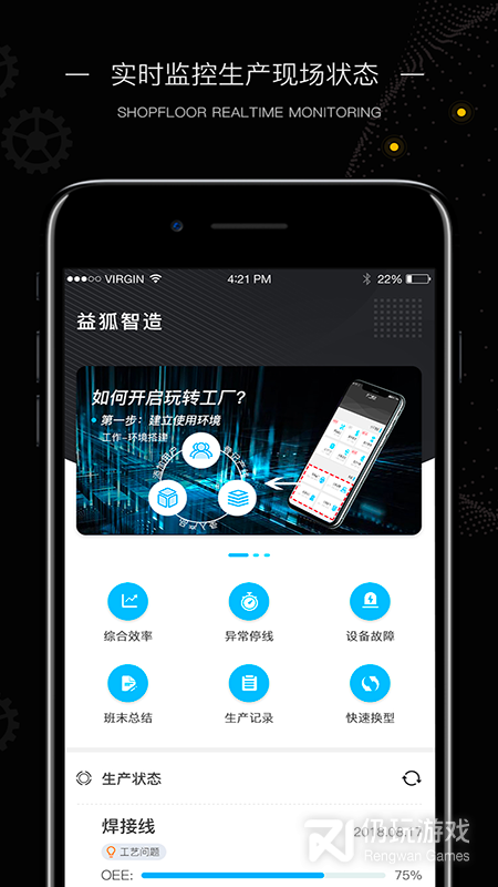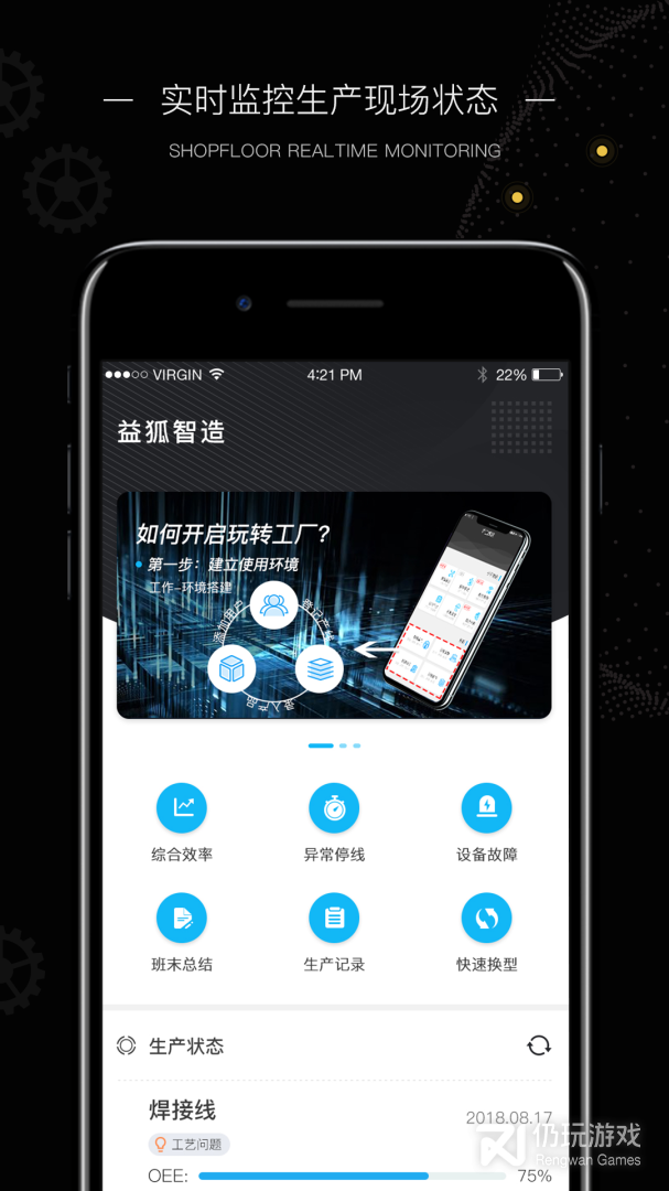 “玩转工厂”针对制造型企业,最初的目的是代替微信群管理生产现场。 现在它融合更多精益生产理念,基于互联网平台,为工厂提供实用的生产管理智能化解决方案。