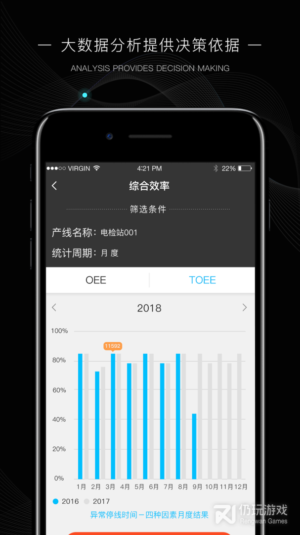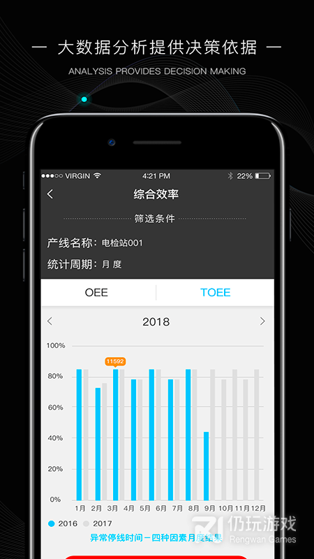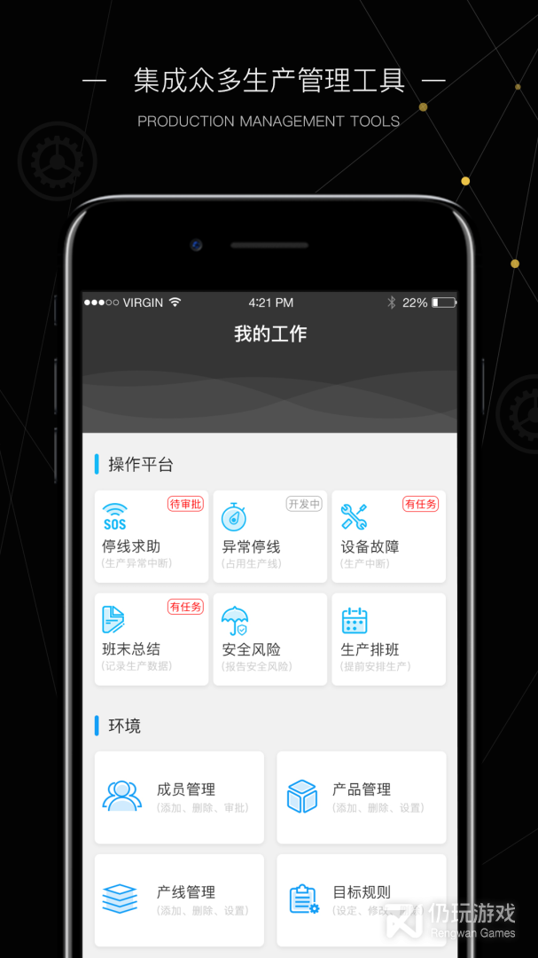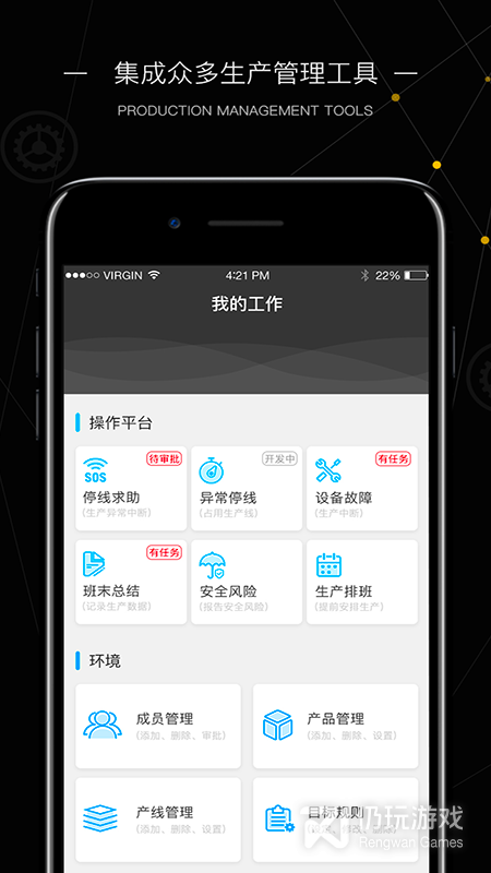 1、玩转工厂,企业生产管理效率管家。通过对设备、质量、物流、人员、安全等生产环节数据监控,提高工厂内安全、效率,简化流程,支持电脑、手机、ios客户端同步管理