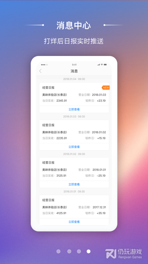 4、消息中心打烊后,美味商家实时推送日报,帮助商家时刻了解店铺情况