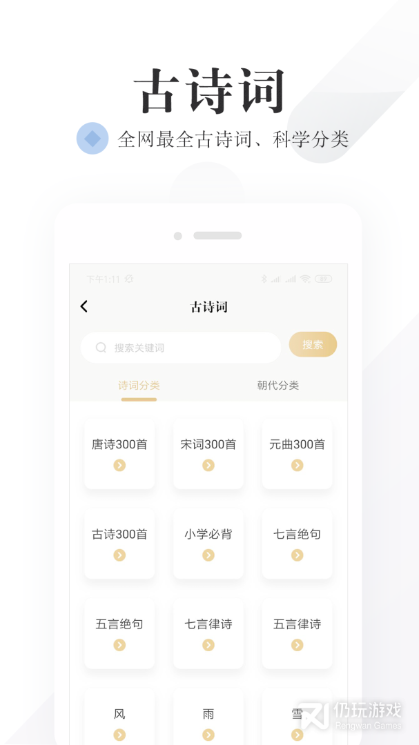 新汉语词典不仅可以作为考试学习的工具书,还是深入研究成语文化的好帮手。唐诗宋词古文翻译鉴赏大全,收录了唐诗,宋词,元曲,其余两汉先秦魏晋金朝五代隋朝明清近现代古诗词古文文言文上千首。