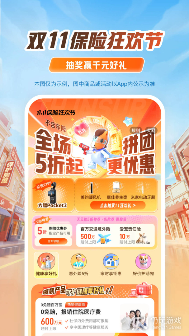 1、【双11保险狂欢节】免费抽奖赢大疆云台相机、华为手机等好礼,全场保障低至5折,拼团可享折上折!