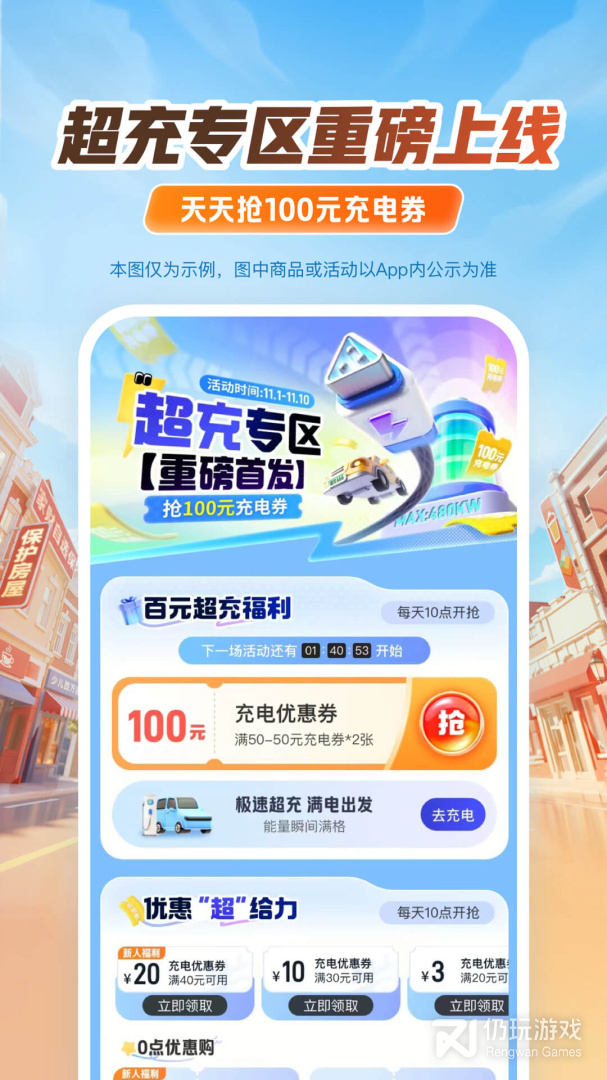4、【超充专区重磅上线】天天抢100元超充礼包,手慢无!服务新客1元购20元充电券包!