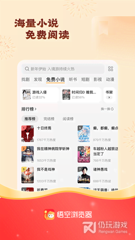 悟空浏览器app,界面美观、搜索快捷的手机浏览器,极速搜索感兴趣内容,资讯、小说、视频以及各种热门网站一键搜索,内容丰富,浏览更快捷。