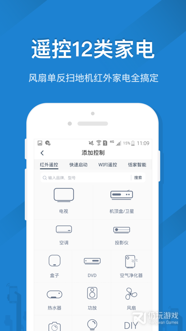 ★最全面的家电类型:支持遥控空调、电视机、机顶盒、投影仪、电风扇、DVD、音响、互联网盒子、扫地机等14种家电。