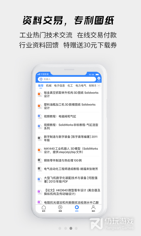 4、每天更新海量科技资讯内容,获悉国内外工业资讯,辐射科技、技术、资料、图纸、知识、问答、文档、软件、教程、经验等数十个领域,满足用户个性化阅读需求