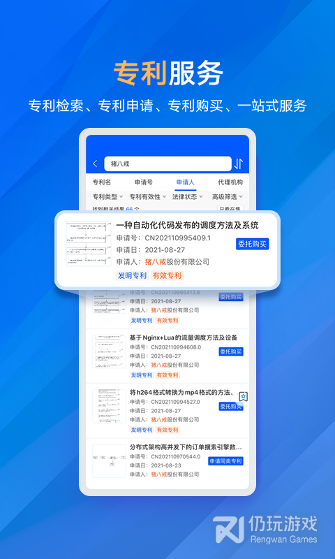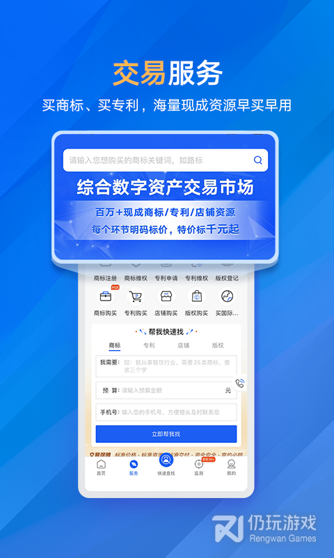 2、界面很简洁,清晰明了,朋友带我一起用的,很不错!因为知识产权这个行业太专业了,需要商标购买和注册,很怕会被坑,问了好几家的顾问,综合比较了一下,还是感觉这边的价格确实很透明,各种赔付也很靠谱,最后还是选择了这家。