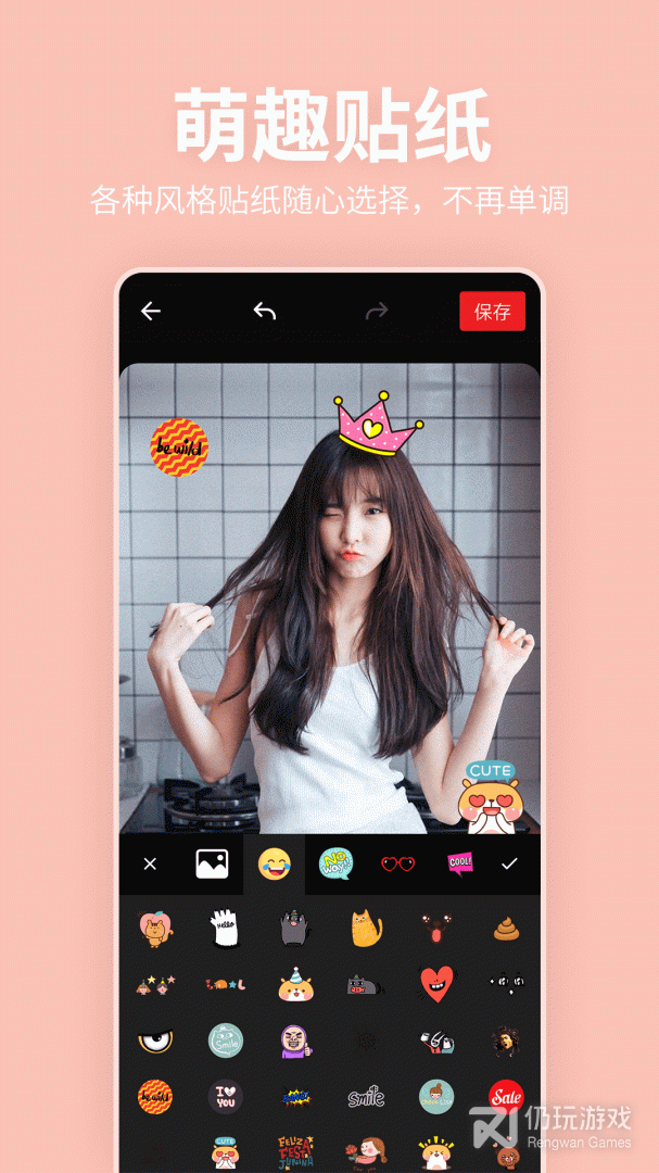 3、各种萌趣可爱贴纸,在贴纸栏中为用户提供了许多手绘的萌趣贴纸元素;