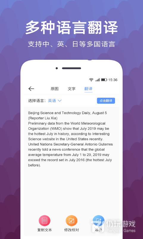 4、智能识别后的文字可进行自由编辑、复制、翻译、校对、重新识别、一键复制分享导出等,自由管理,方便省心