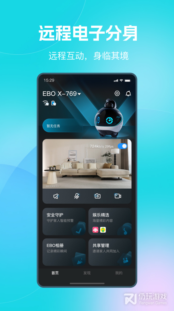 EBO HOME提供了一种全新的通信体验,使用户可以身临其境地远程控制机器人。通过实时渲染3D模型,用户可以轻松地掌控机器人,了解机器人的运作和环境。此外,EBO HOME提供千人千面的氛围灯功能,使用户可以在高自由度的情况下实时预览机器人所处的环境。智能任务引擎允许用户根据自己的需求定义百变场景,增强了用户的控制体验。此外,EBO HOME提供大量的在线内容,包括音乐、播客和有声书,使用户的体验更加丰富多彩。