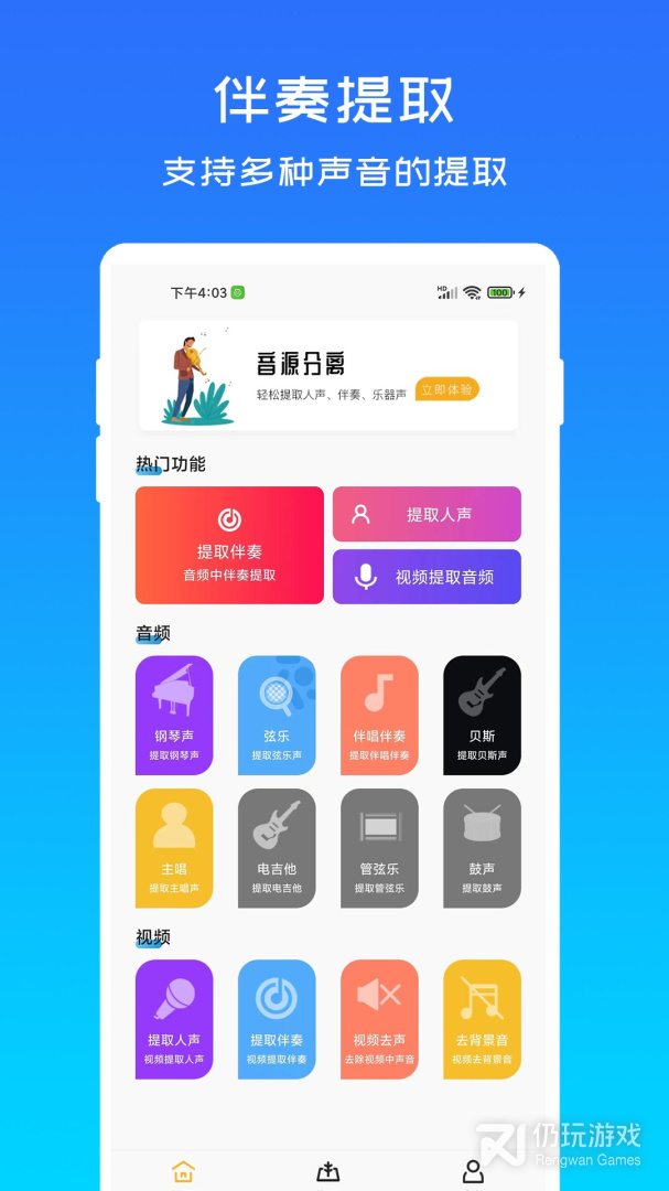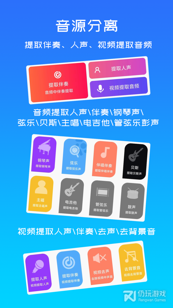 2、用户使用软件可以快速的提取音源中的伴奏、人声等,还可以为视频添加音频,软件功能非常不错,用户了解功能来使用吧,下面小编为大家提供音源分离下载