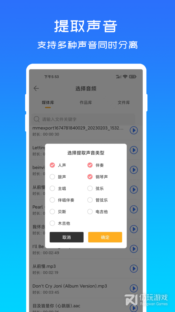 5、用户可以利用该软件将音源内的人声和背景音乐进行分离,能够帮助用户更好的获取背景音乐
