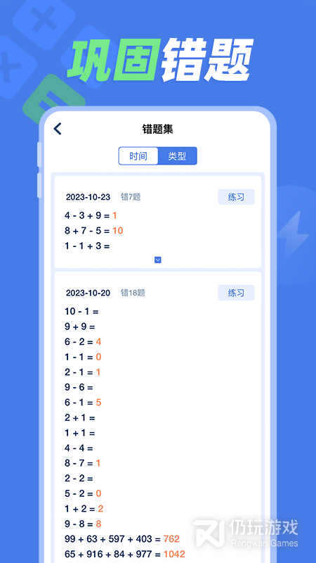 2、设置了错题本,用户可以重复练习自己的错题,以便更好的巩固计算能力