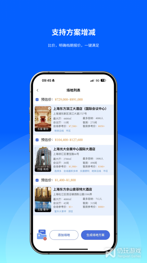 2、为用户提供酒店预定、会场预定和比价功能,如果你正在为公司开会和吃饭的地方发愁,那么app可以帮到你,立即到下载使用!