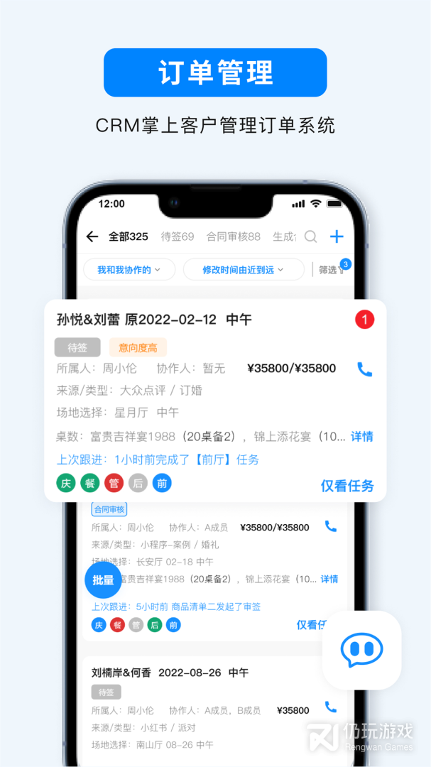 2.演职人员资源管理、多门店管理、订单管理、合同管理、销售数据分析、运营数据分析等为一体的一站式宴会系统;