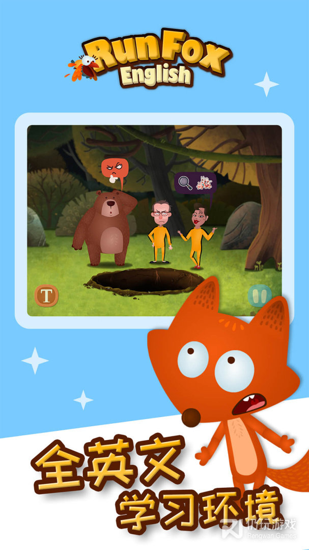 《RunFox狐狸快跑少儿英语启蒙》是一款儿童英语学习软件,APP用游戏的方式帮助孩子学习英语,自然而然地获得英语听说能力。快来下载试试吧!
