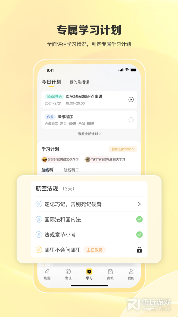 1、平台拥有丰富的飞行学习课程,题库等等资源,还拥有航空知识等诸多内容