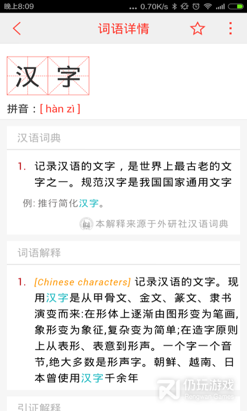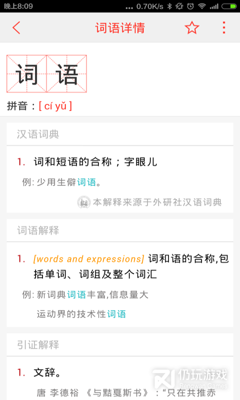 汉语词典,词汇数量 五万七千有生词本可查询生字,分享词语