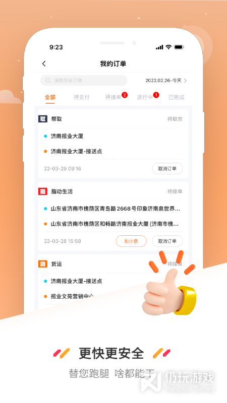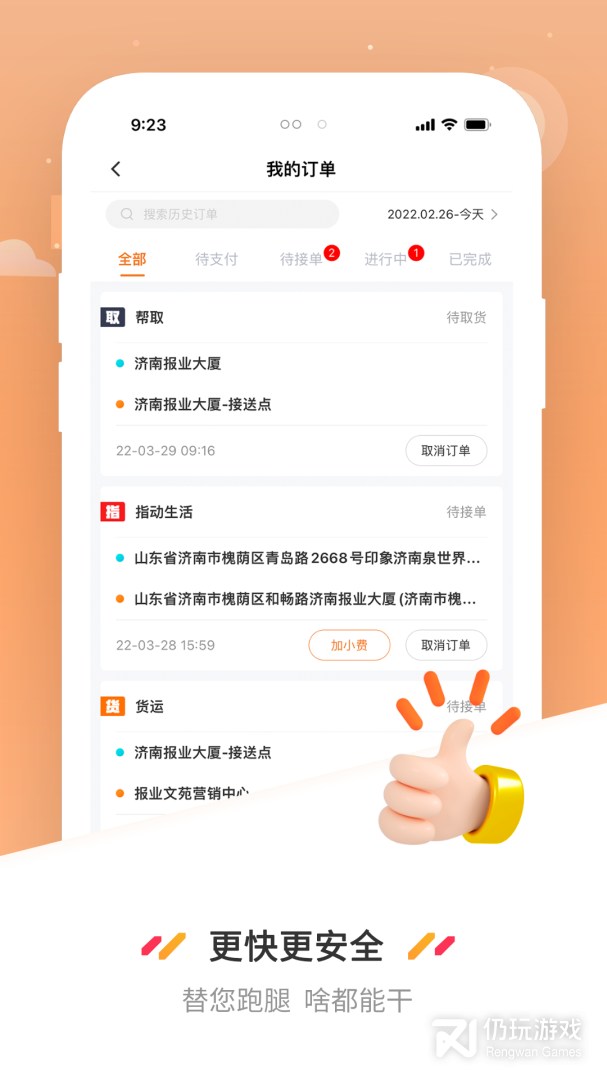 可以在线浏览APP提供的跑腿订单信息,让自己可以在线进行接单。