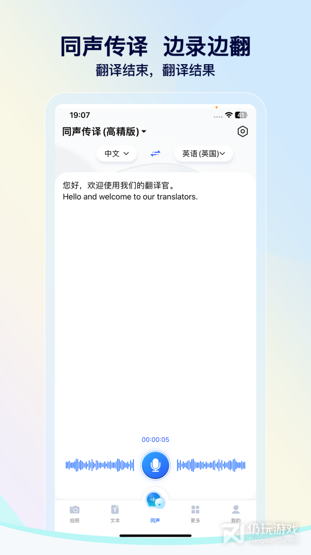 2、我们的翻译官下载,一款功能强大翻译精准的在线双语互译小助手,通过我们的翻译官智能识别实时语音内容,快速精准翻译,更多功能请下载了解