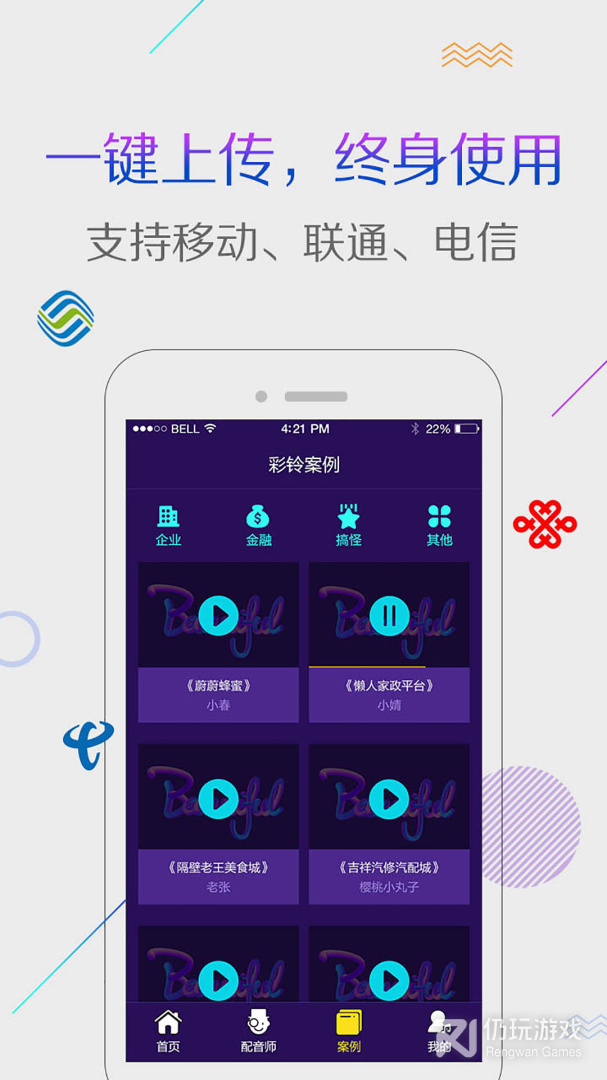 彩铃秀一款制作定制彩铃,企业彩铃,集团彩铃,支持移动,联通,电信三网号码的彩铃设置软件