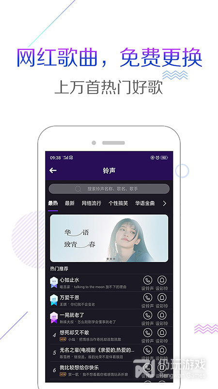 每天都会为你推荐最热门的手机铃声;