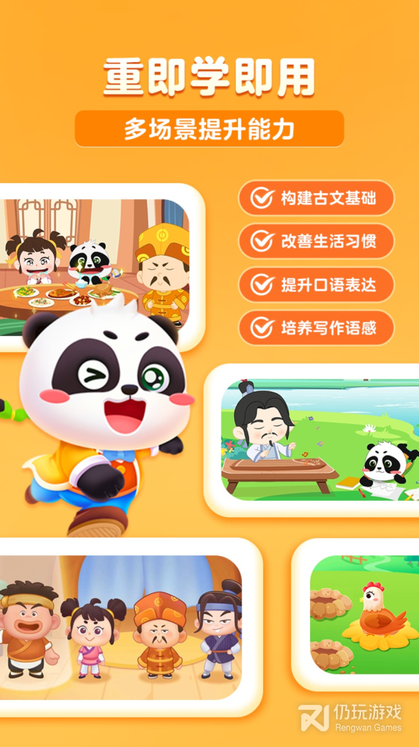 北大资深教研团队精选100+成语故事,通过高质量情景动画逐一呈现,用生动可爱的原创卡通人物形象和引人入胜的故事情节,将原本抽象凝练的成语含义让孩子轻松理解掌握。超过100种的互动游戏,巩固学习成果的同时让孩子爱上学习。300+知识扩展,将一个个成语串联延伸,为孩子搭建完整的国学知识体系