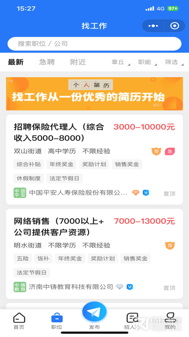 3、专为在章丘地区寻找工作的用户提供的一款招聘信息平台,手机便捷获取