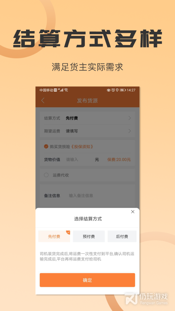 免费匹配车源,为货主提供车队管理、开具物流增值税发票、低价货运保险等服务。