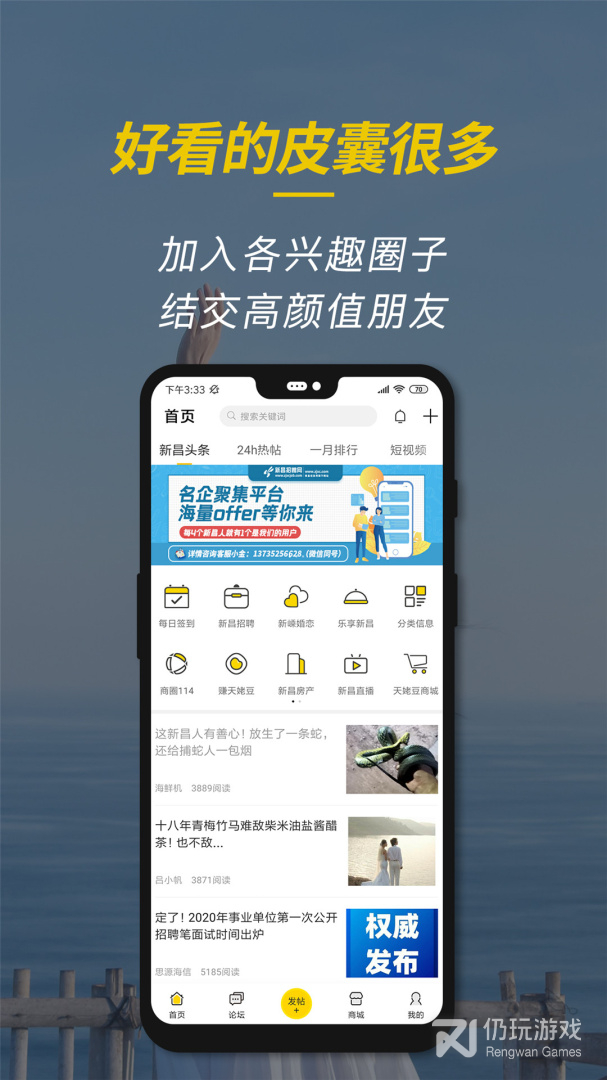 3、在首页中拥有新昌头条、24h热贴、一月排行、疫情动态、新昌招聘等功能;