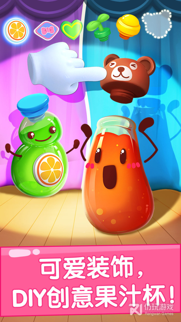 为客人准备一份惊喜吧!使用各种美丽的瓶塞、贴纸去装饰你的果汁,放入冰块,冰镇果汁做好啦!卖给客人,赚来的金币还能解锁更多的道具哦!