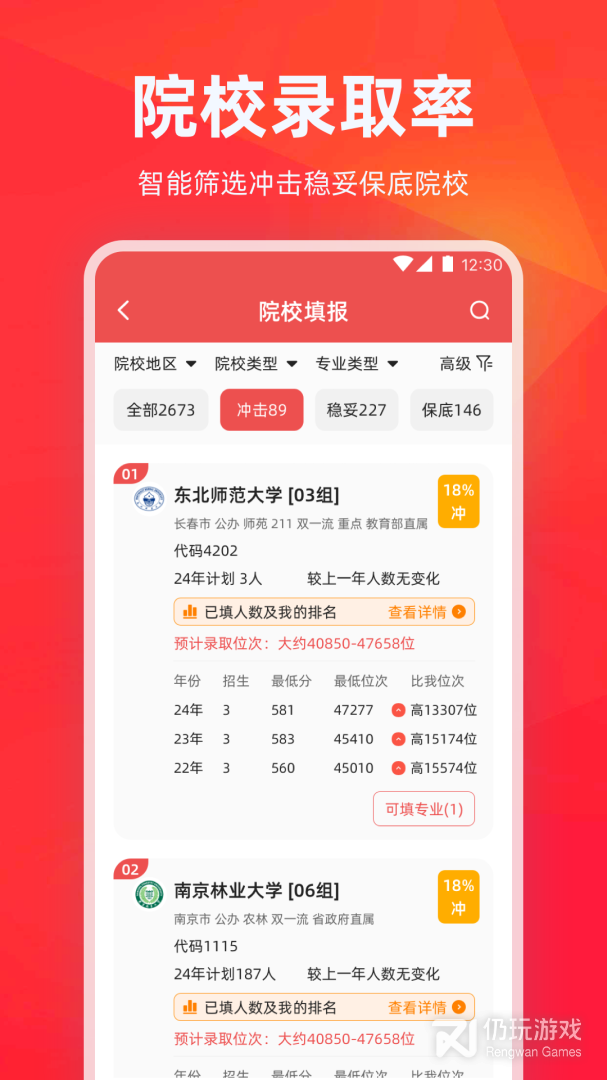 2、江苏志愿填报平台2023这里是专为大家提供的全新的资源填报的信息,这里的信息非常的丰富,覆盖的大数据也非常的多,用户来这里对专业、学校进行查找,同时还可以对你的分数排名进行评估等