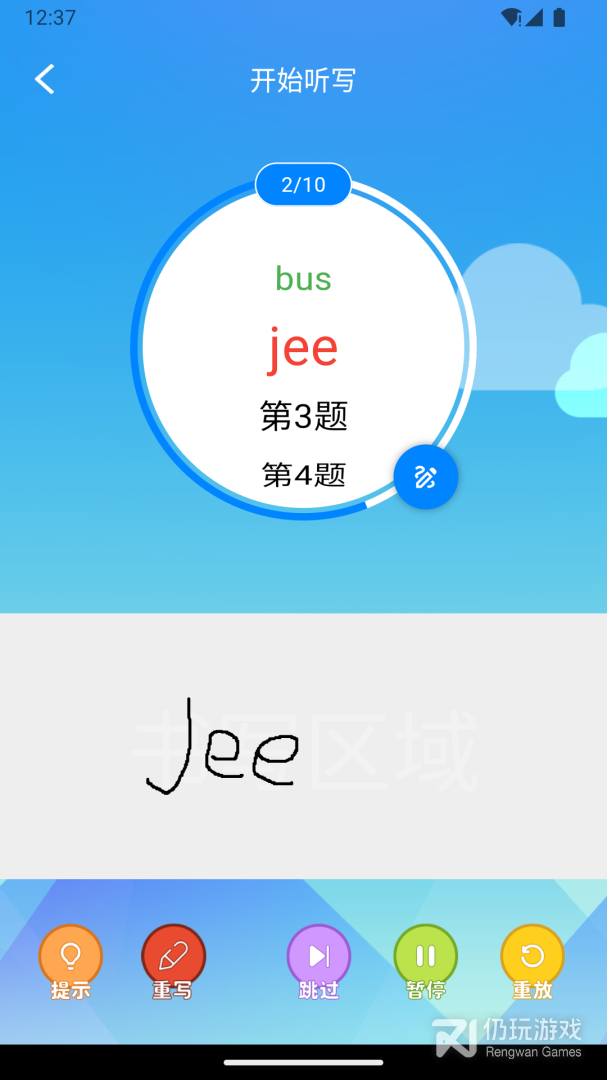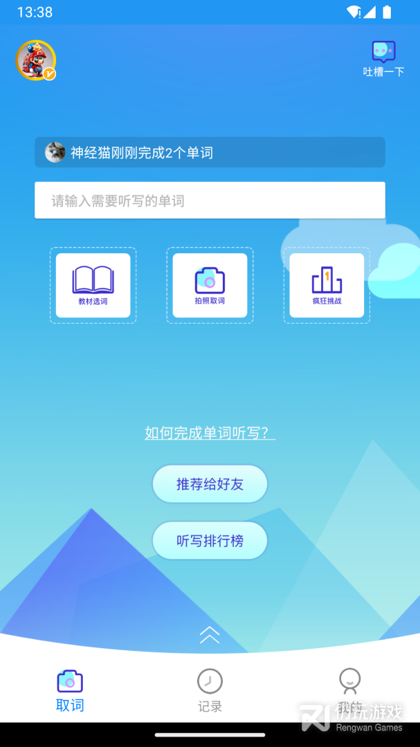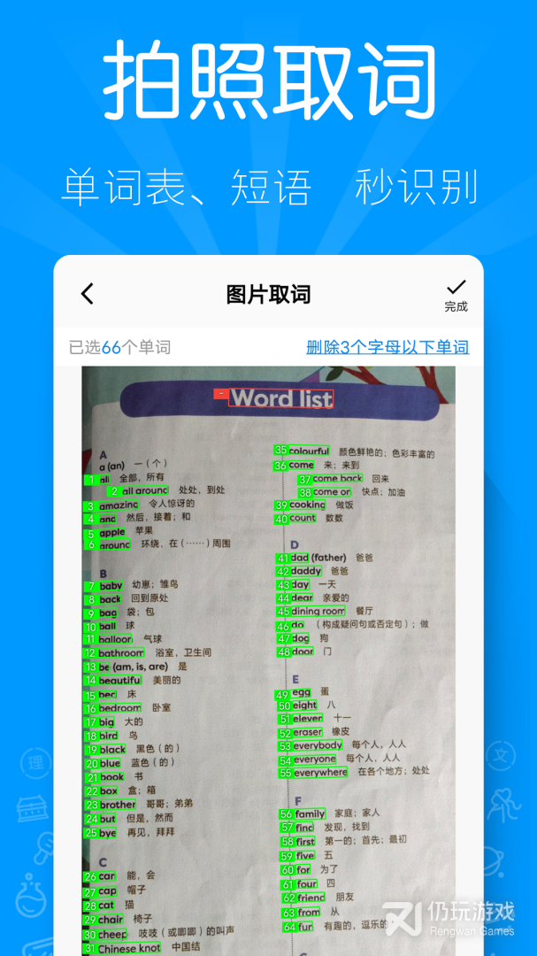 1、你只需要用手机将要听写的单词拍照,就可以帮你自动生成单词表来语音播放,还可以在线和好友发起挑战