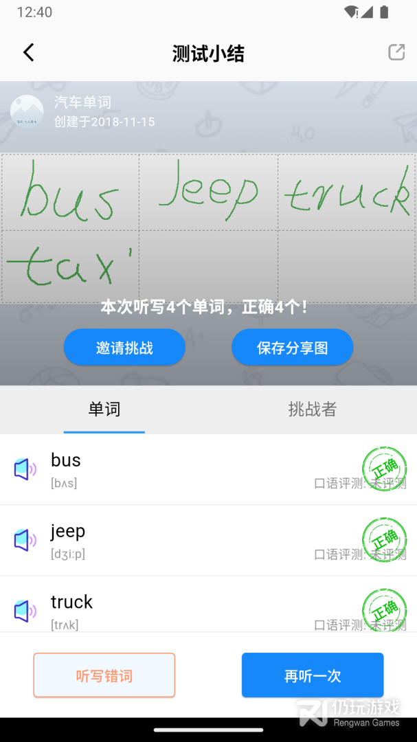 好友之间可以PK,看谁记得牢,写的对