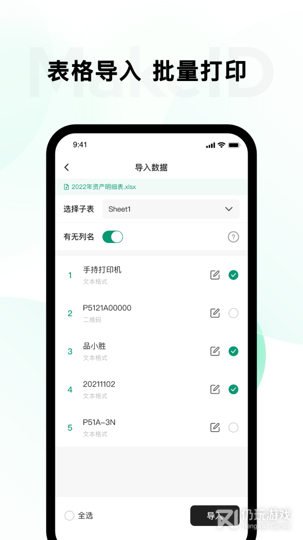 6.支持导入.xls格式的Excel数据库批量打印;