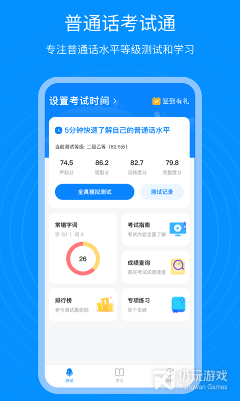 普通话考试通APP,专注普通话水平等级测试和学习.让我们帮你搞定考证,通过考试,说一口流利普通话!