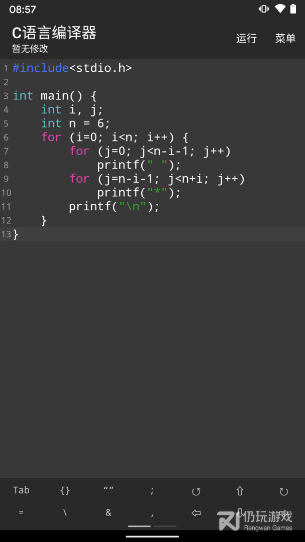 3、包含了很多实用的C语言辅助工具的C语言编译器APP非常适用于正在学习和实践C语言的用户,这款软件可以帮助用户更加快速地进行C语言的编写,软件内还有 非常多程序便捷的模板可以使用,操作非常简单,界面很直观,用户可以在软件界面找到自己所需的功能,直接使用即可