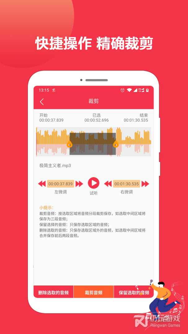 3、功能丰富多样,操作简单便捷,支持音乐裁剪、拼接、变速等等