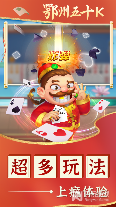 鄂州五十K融合了争上游,找朋友,斗地主,五十K等多种打法,在鄂东南一带广为流传。不仅具有刺激(五十k、四张或四张以上都是炸),灵活(三张以上可做顺),多变(三个为炸)的牌型种类,还需要开动大脑(融合了找朋友打法,在出牌时要分析谁是对家),去研究局势。游戏瞬息万变,既需要动脑判断,又需要团结合作精神,相信大家在这里一定能找到劳逸结合的疯狂快感。
