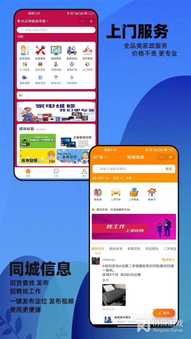 2、家政 水电安装家电维修 ,代驾 搬家货运 跑腿服务等。