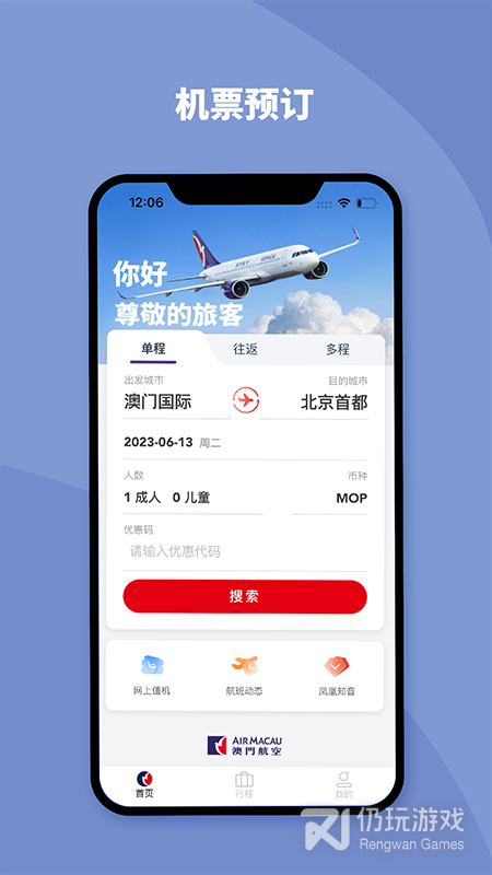 3、澳门航空是澳门航空的官方客户端,澳门航空可以为旅客提供方便,用户可以在澳门航空上购买机票、查询航班,澳门航空方便旅客朋友出行