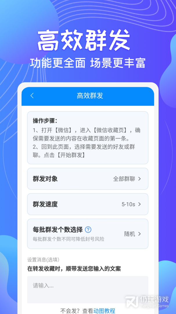 支持一键群发商品图片、表情之类,还能群发有趣的小程序;
