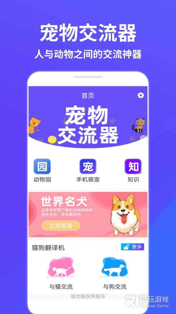 3、萌宠猫狗交流器推荐给各位家中有小宠物的宠友们,这是一款可以让你听到家中的小宠物在说什么并与之交流的软件,不管是小猫咪还是小狗狗交流起来都很方便哦,不仅如此,超多小动物的声音这里都有,就像一个动物园一样,还能这里了解到更多的萌宠知识呢