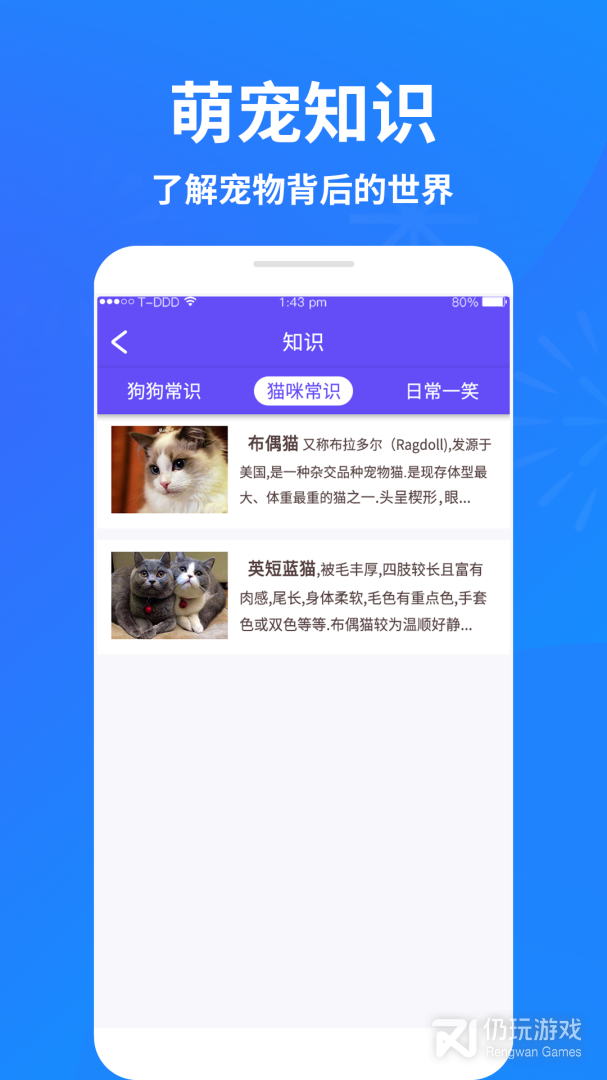 5、知识,提供一些猫狗的常见知识,以便您更好的了解您家的猫咪和狗狗。