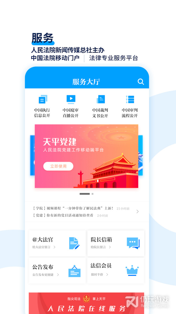 3、天平阳光是人民法院的一个融媒资讯软件。可以利用主流媒体,或者这个APP发布海量的政法的资讯的内容。他整合了各种的资讯信息,各类的数据内容。让你可以移动端的使用,关注司法的新闻的应用软件。体验感极为的好,法律的内容都覆盖的一个综合应用软件