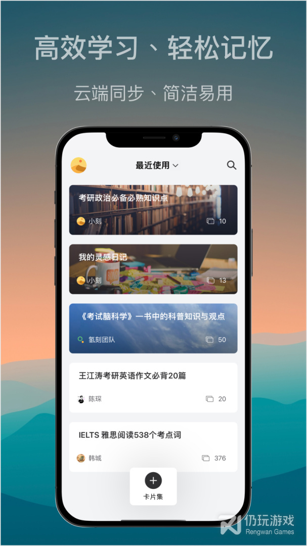 氢刻提供科学的记忆方法,可以将需要背诵记忆的内容,提取成卡片,利用氢刻的学习模式进行有效记忆。