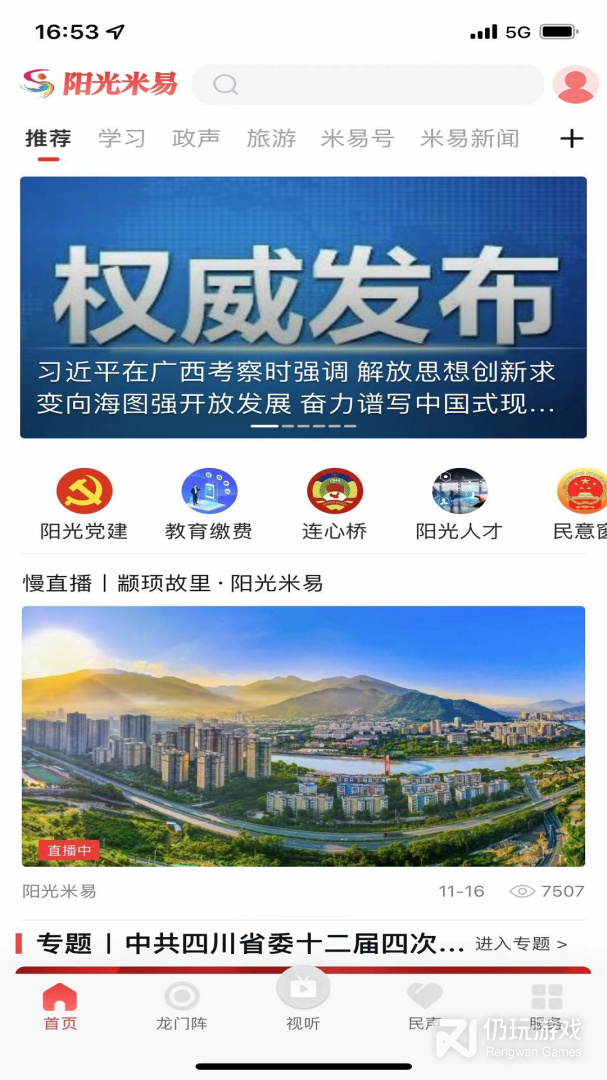 3、平台拥有新闻资讯,旅游,问政,服务,视听等功能内容,可以帮助更好的引导及服务米易