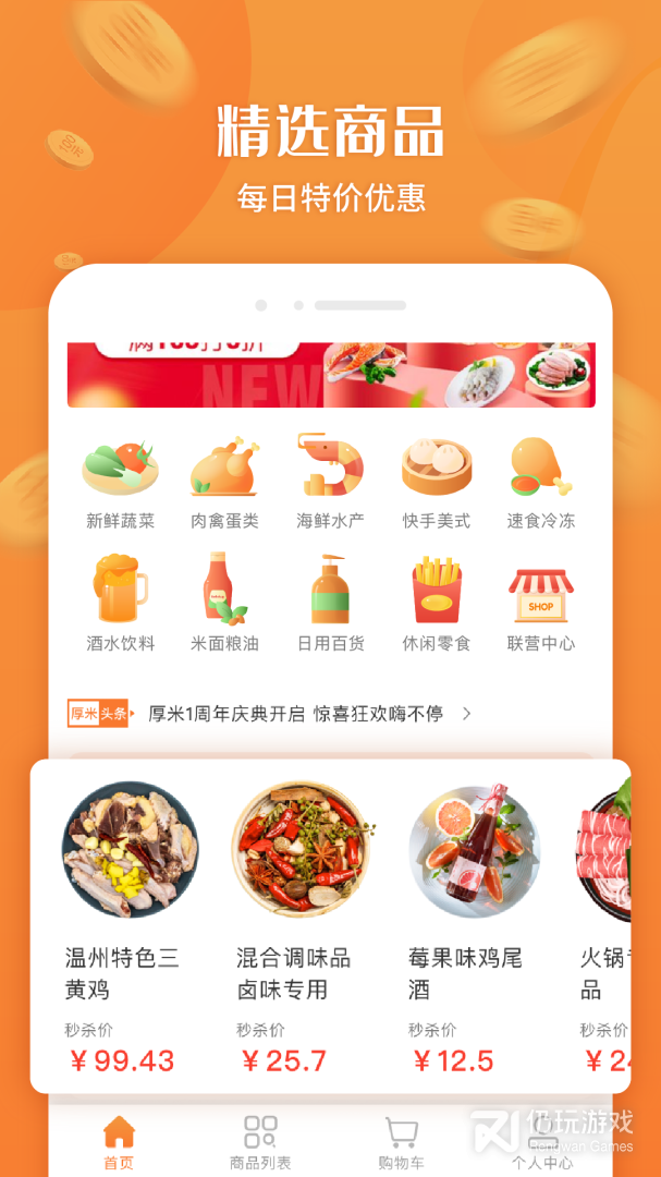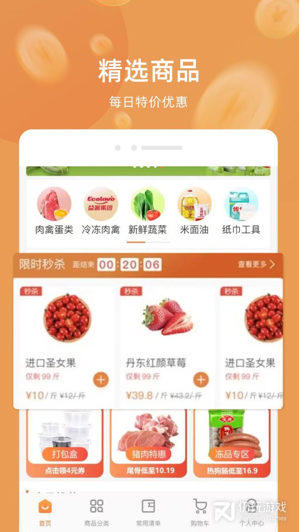 2、品类齐全每日精选上百种优质商品,满足日常购物的所有需要